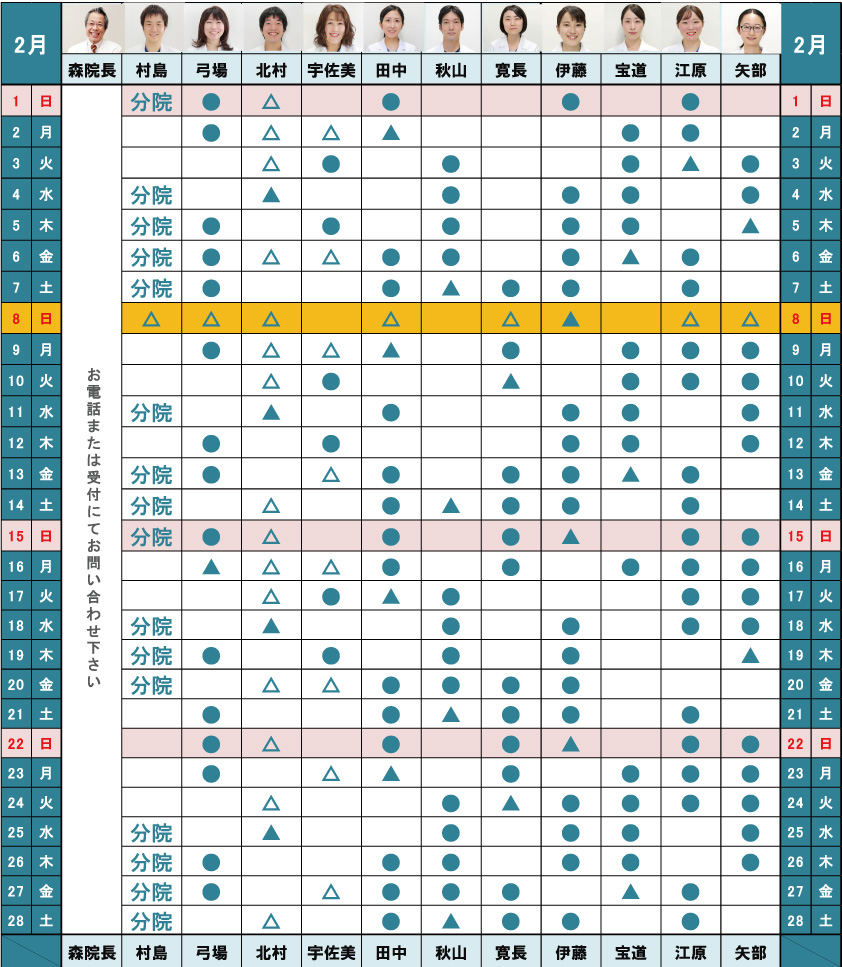 診察日:2月は決まり次第告知いたします