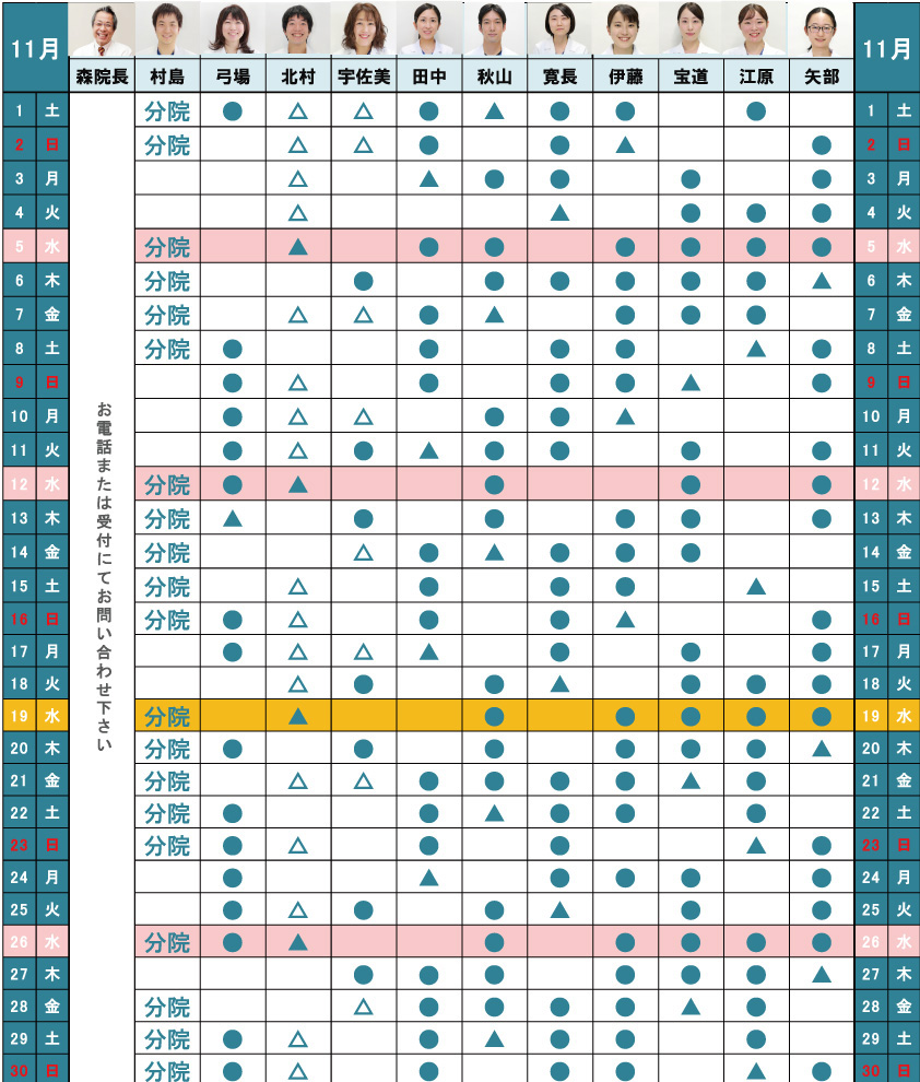 11月の獣医師勤務表