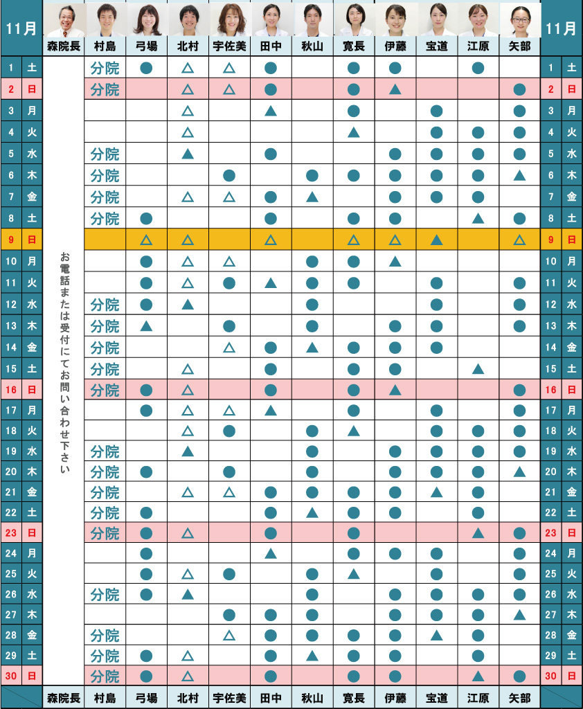 診察日:11/6(木)、11/20(木)、11/27(木)